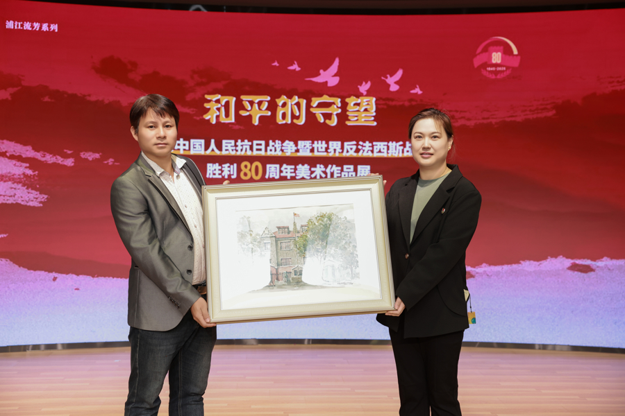 11月3日,浦江流芳系列“和平的守望”——纪念中国人民抗日战争暨世界反法西斯战争胜利80周年美术作品展巡展在静安寺街道党群服务中心拉开帷幕,将持续至11月7日,开放时间为每日9时至19时30分。